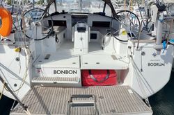 Boat equipment features a BBQ, a bimini and a bathing platform. It also boasts a flybridge. The fully-equipped galley includes a sink and kitchen utensils.