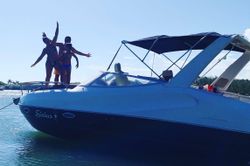 Tässä moottoriveneessä on ulkosuihku ja uintiteline.